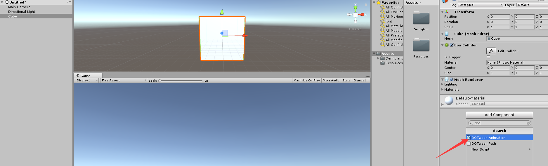 选择3D对象或者2D对象,直接在AddComponent处,搜索DoTween 就可以看到DoTween Animation和DoTweenPatch;栗子在下:
