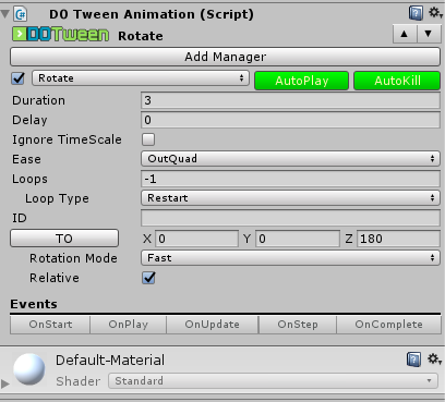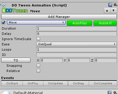 若是需要添加事件,只需要点击对应的On-方法添加即可。LocalMove同Move,唯一区别就是LocalMove是自身的坐标,相对于父物体来说。