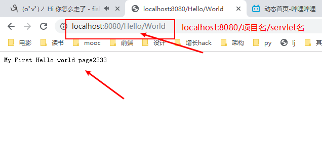 然后启动servlet,打开浏览器,就可以通过url访问你的servlet了