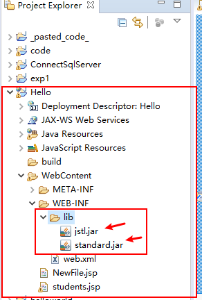 上面是简单的测试,上面的测试代码把一个学生的数据显示到jsp页面了,那么如果像显示多个学生的信息呢, 比如说通过查询数据库,获取了3条学生数据,想把3条数据传递给jsp页面,jsp页面展示这3个学生数据的信息。 <br /> ###需要用jstl的标签c:forEach来遍历 首先需要下载jstl(JSP标准标签库)的jar包, jstl.jar standard.jar 下载地址是:http://archive.apache.org/dist/jakarta/taglibs/standard/binaries/jakarta-taglibs-standard-1.1.2.zip 然后把这两个jar文件放在项目目录的WEB-INF/lib文件夹里