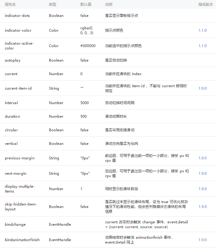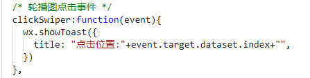 <swiper indicator-dots='true' autoplay='true' interval='3000' duration='200' circular='true' bindtap='clickSwiper'>