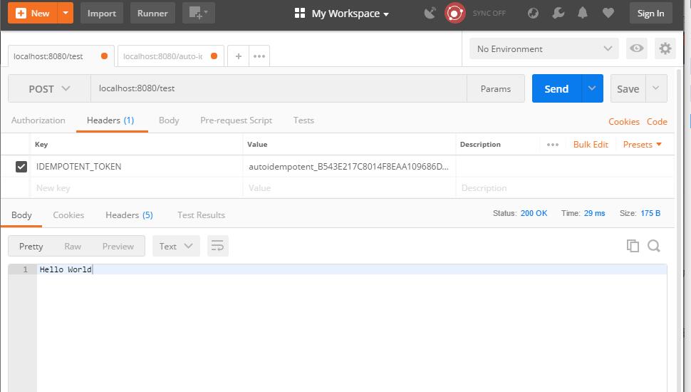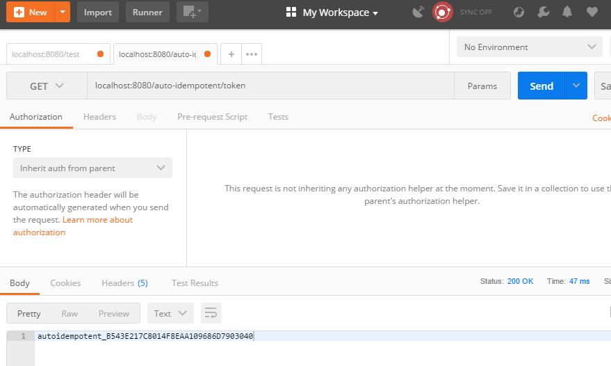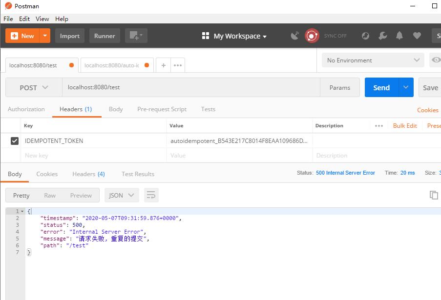 携带此token在demo的post请求头或请求体中设置参数 IDEMPOTENT_TOKEN 的值为上面的值