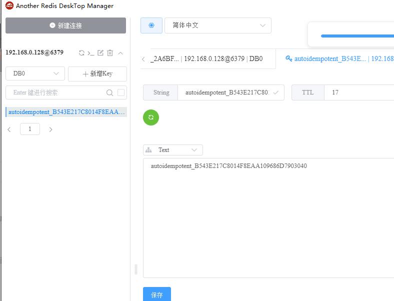 这时会你的spring项目连接的redis服务器中生成一个前缀为'autoidempotent_'的为幂等性请求服务的token,例如: