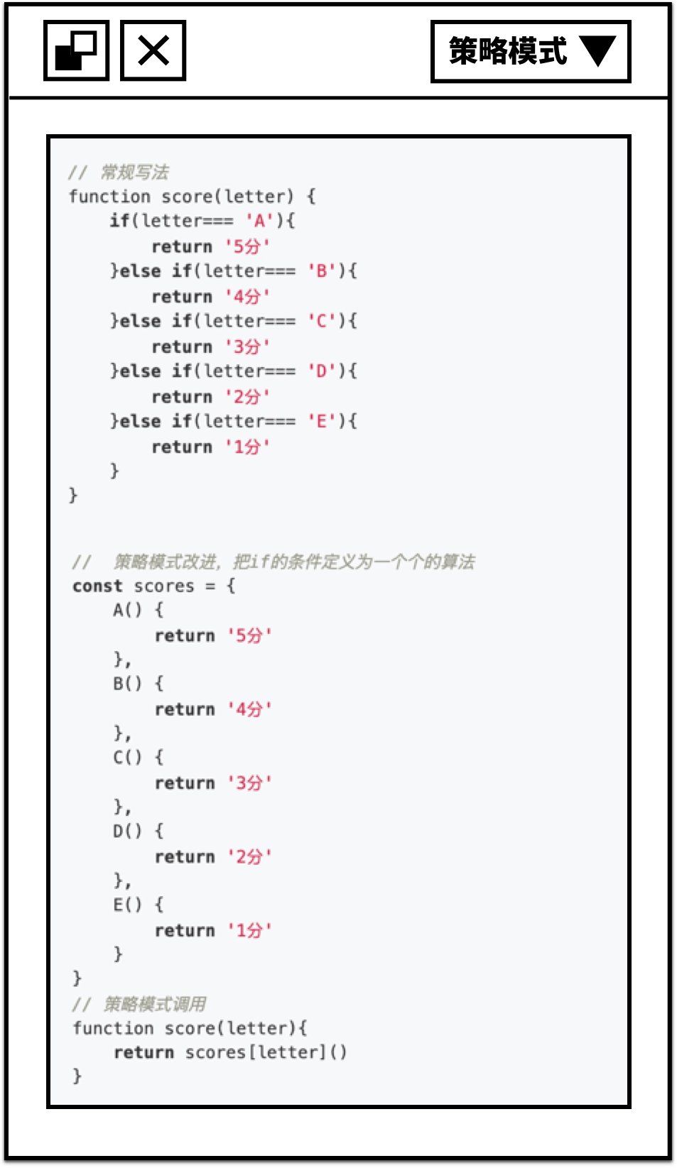策略模式的思想是:定义一系列的算法,把它们一个个封装起来,并且使它们可以相互替换。