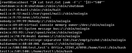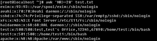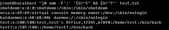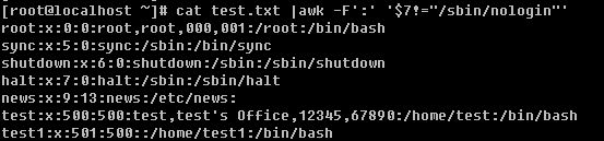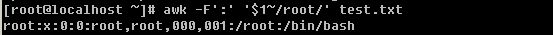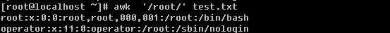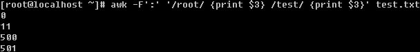 awk还可以多次匹配,如上例中匹配完root,再匹配test,它还可以只打印所匹配的段。