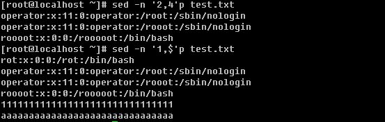 b. 打印多行打印整个文档用 -n ‘1,$’p