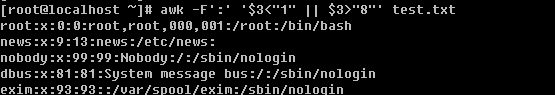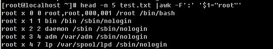 4. awk -F':' '$1=="root"' test.txt |sed 's/root/toor/'
