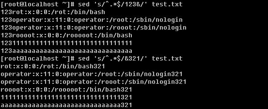 上面grep中使用的特殊字符,如’^’, ‘$’, ‘.’, ‘*’等同样也能在sed中使用。