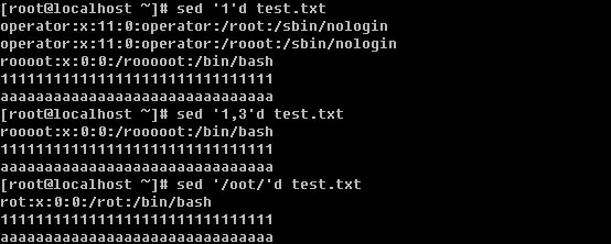 1. 把/etc/passwd 复制到/root/test.txt,用sed打印所有行;