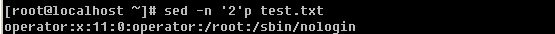 a. 打印某行 sed -n ‘n’p filename 单引号内的n是一个数字,表示第几行