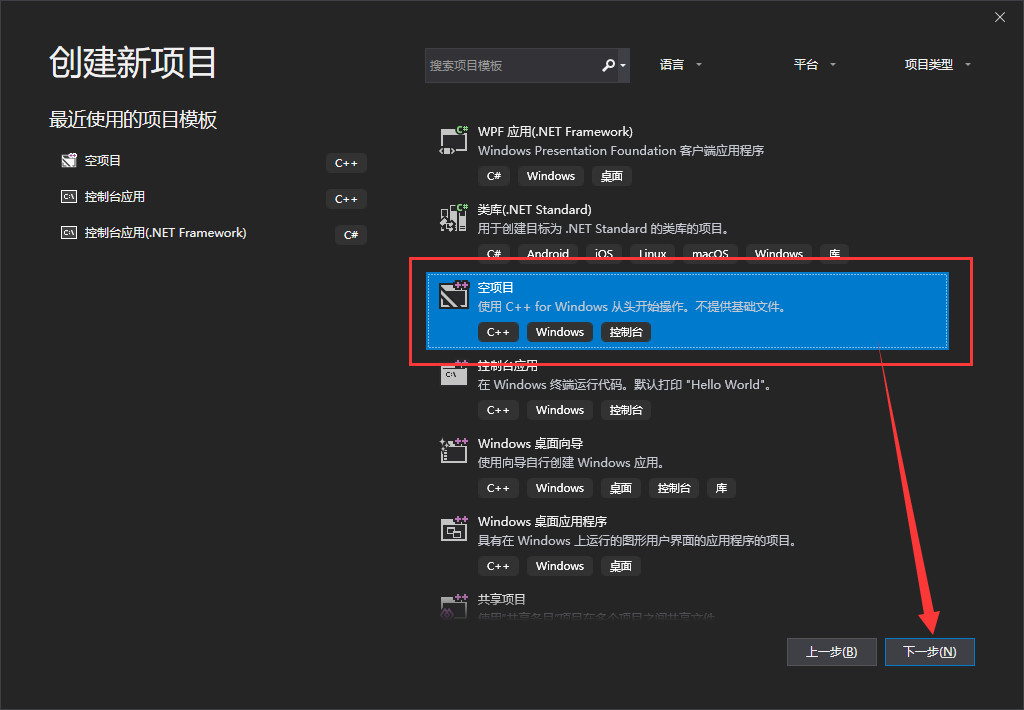 第二步,选择空项目并点击下一步。