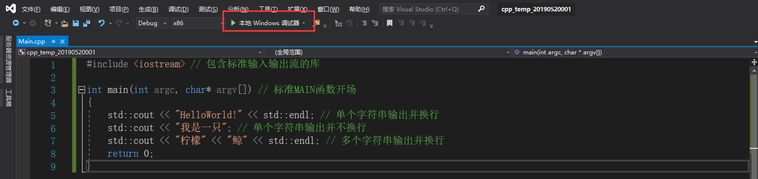 6 std::cout << "我是一只"; // 单个字符串输出并不换行