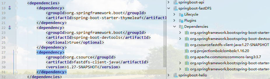至此,更新项目Maven,pom.xml文件就不会出现找不到fastdfs-client-java依赖了。(成功导入fastdfs-client-java依赖)