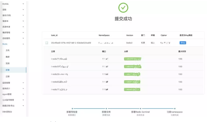以上几项规范统一的标准化流程,为 Qunar Redis 的整个运维平台化提供了有力的支撑,目前 Qunar Redis 的 90% 以上的运维操作都实现了平台自动化,包括工单申请及审核、集群部署、实例迁移、集群垂直伸缩、不同维度(服务器、集群、实例)的信息查看等,下面主要介绍下 Qunar Redis 集群部署和实例迁移的实现过程。