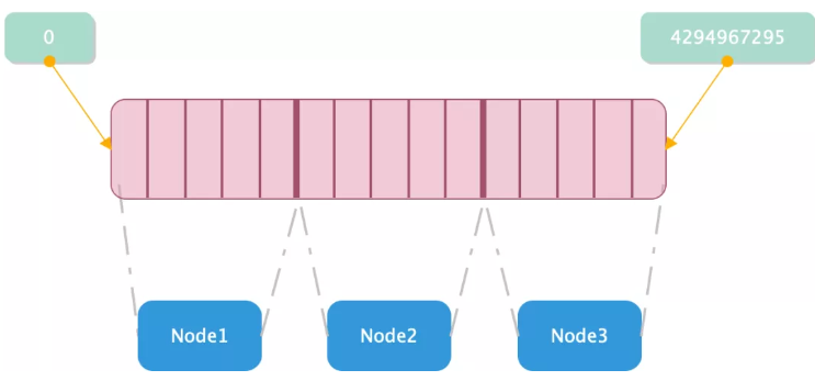 开发人员提交 Redis 集群申请工单信息后,DBA 会依据工单中的内存大小、QPS 大小等几项主要的数据,规划集群分片节点数量为 N,所有节点平均分配 0~4294967295 范围内的值,即共有 2 的 32 次方个 key 的值,某一个 key 使用 murmurhash2 算法计算哈希值后,只会落在集群的一个节点上。