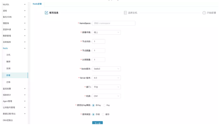 根据集群规划在 Redis 集群部署页面填写部署信息。