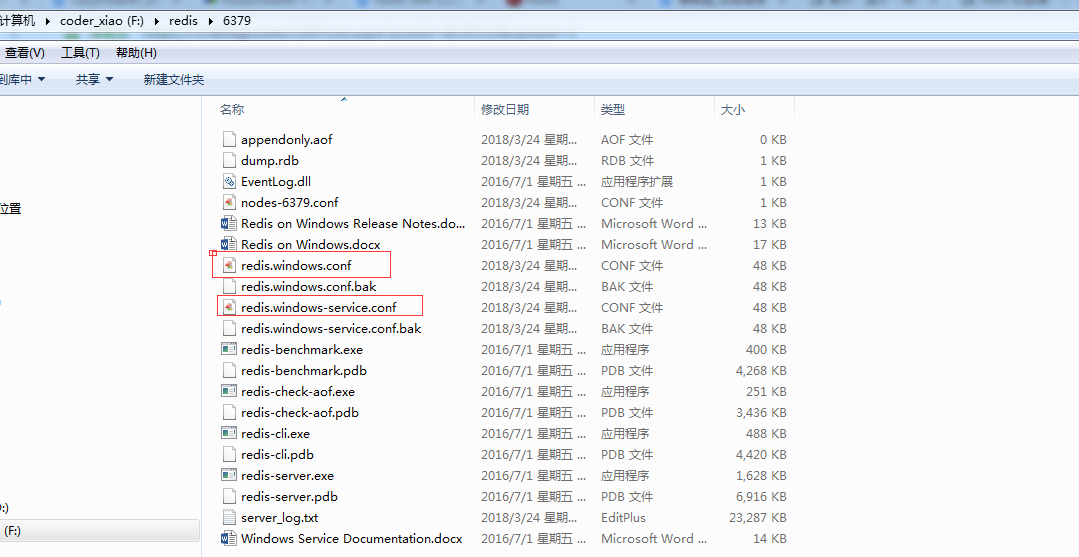 注意红框标注的,redis文件夹下有两个配置文件,我使用了不带-service 的,这两者的区别我还不清楚
