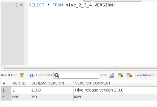 use there is already exists a hive metastore exists with lower version, we can the following script to upgrade the metastore database: