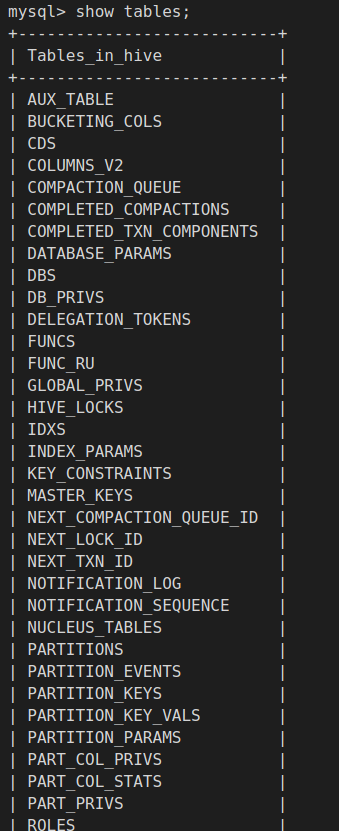 执行该命令会自动读取hive配置文件中的连接信息,在mysql的hive库中创建表结构和数据的初始化
