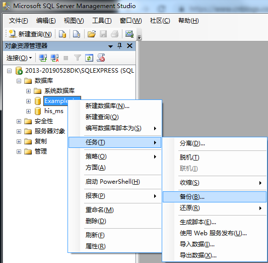 1.2、选中需要备份数据库,右击鼠标,如下图: