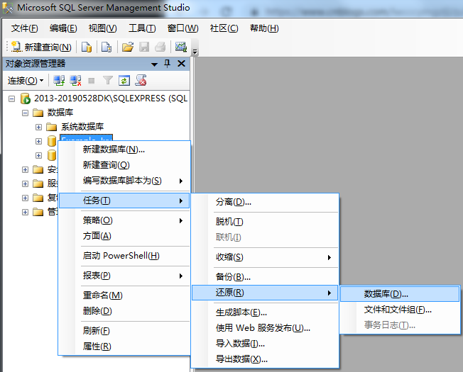 2.1、接下来我们讲进行数据还原,选中数据库,如下图所示: