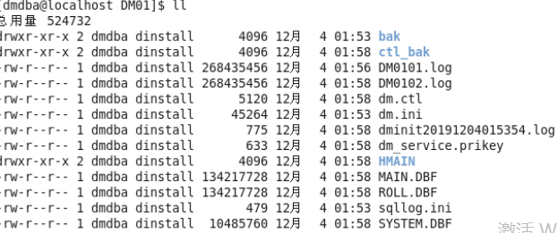数据库创建成功后,在/dm7/data/DM01下可以看到相关的配置文件、控制文件等文件均已生成: