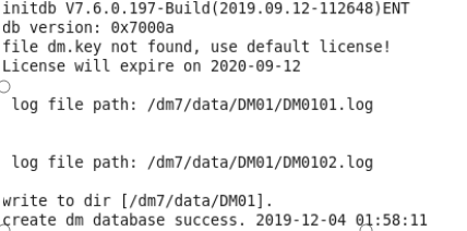 ./dminit path=/dm7/data db_name=DM01 instance_name=TEST1 port_num=5236