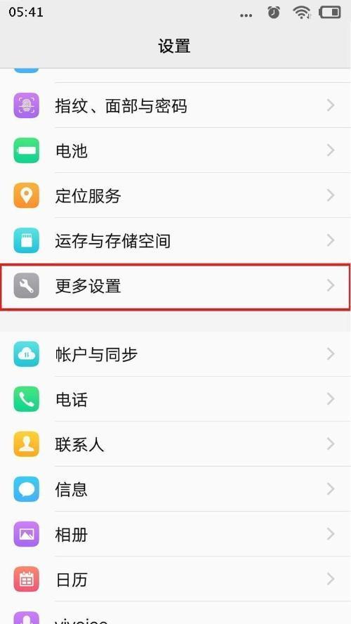 到这里重新进入vivo NEX的设置主界面上,找到更多设置并点击进入,这个时候,我们就可以找到开发者选项一栏并进入开发者选项.