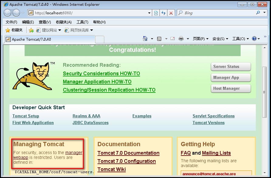 2、下载下来后是个压缩包,如:apache-tomcat-7.0.40.zip,解压到一个非中文目录下即可完成安装。