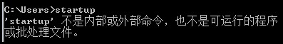 1、打开命令行窗口,直接输入startup然后回车,提示不是内部或外部命令: