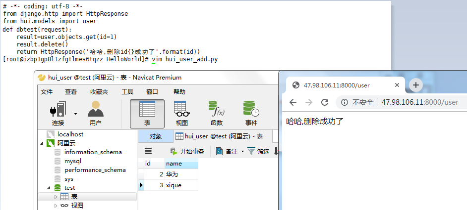 注:centos7下需安装python3,mysql,mysqlclient,Django