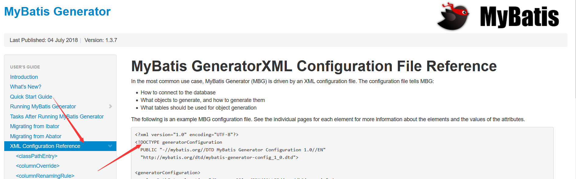 配置文件里的内容在MyBatis Generator官网上可以直接复制。官网网址:http://www.mybatis.org/generator/running/runningWithJava.html