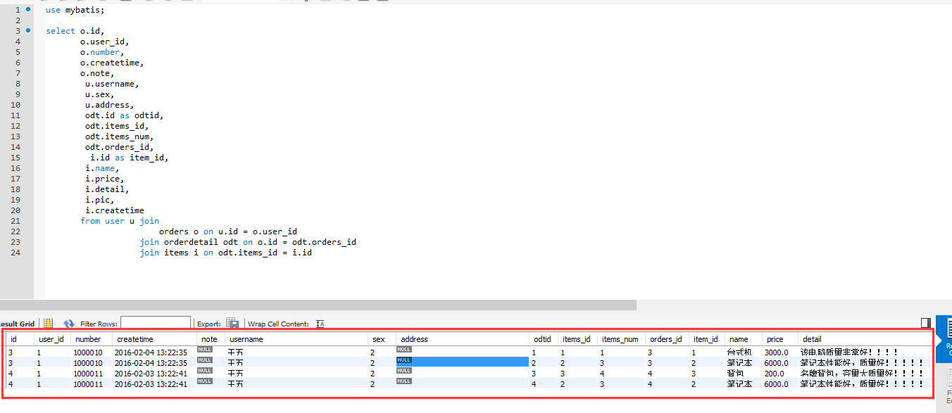 select o.*,u.* from user u join orders o on u.id = o.user_id