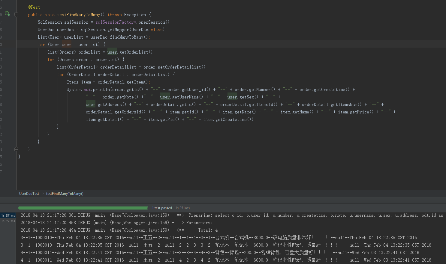 List<User> userList = userDao.findManyToMany();