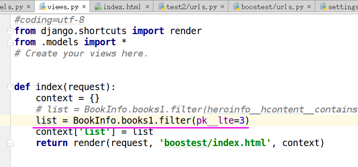 - 查询集返回列表,可以使用下标的方式进行限制,等同于sql中的limit和offset子句