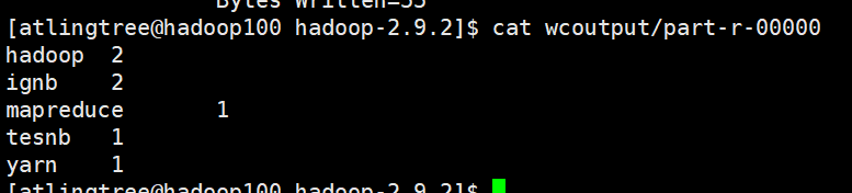 [atlingtree@hadoop100 hadoop-2.9.2]$ cat wcoutput/part-r-00000