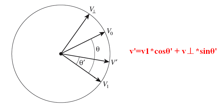 v'=v1cosθ' + v⊥sinθ'