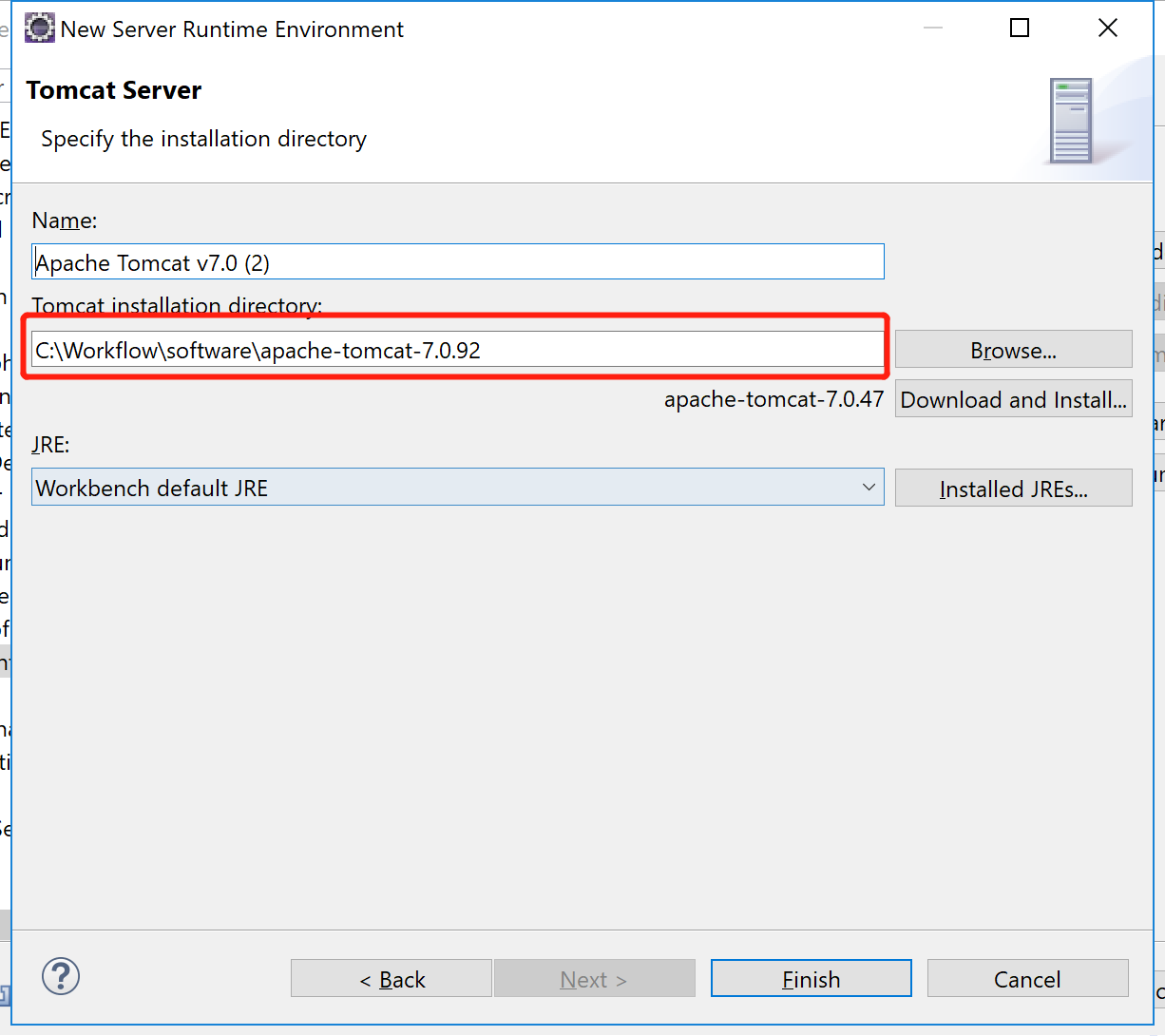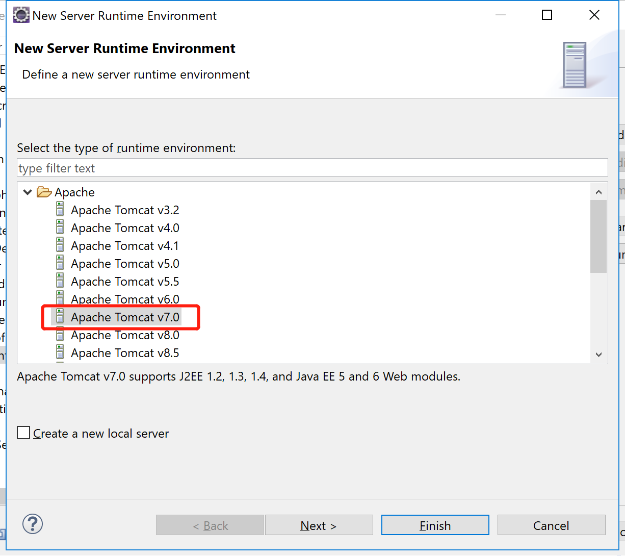 选择你自己的下载的tomcat 版本,我下载的是7,点击Next