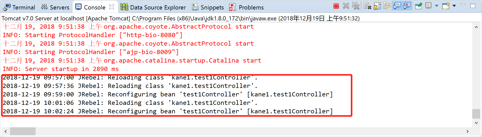 2018-12-19 10:22:49 JRebel: Reloading class 'kane1.test1Controller'.