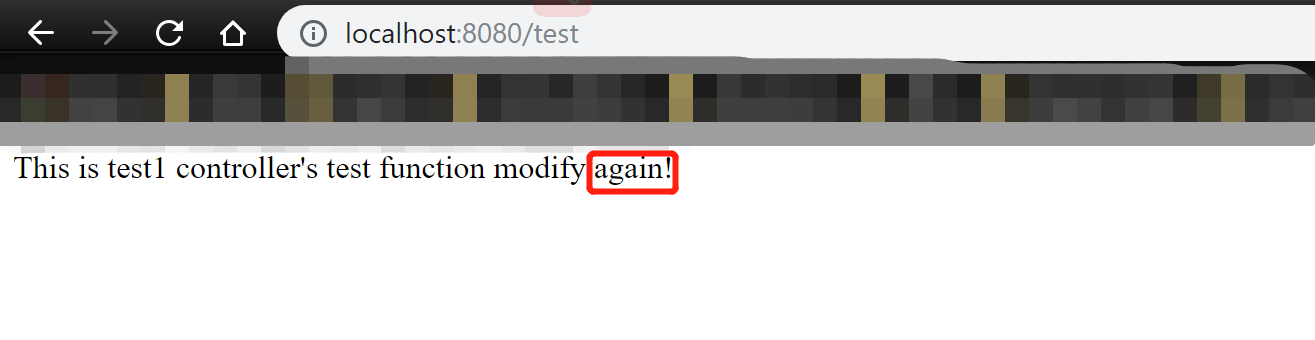 - 我们继续更改test1Controller.java,将test1输出改为 "This is test1 controller's test function modify again!"