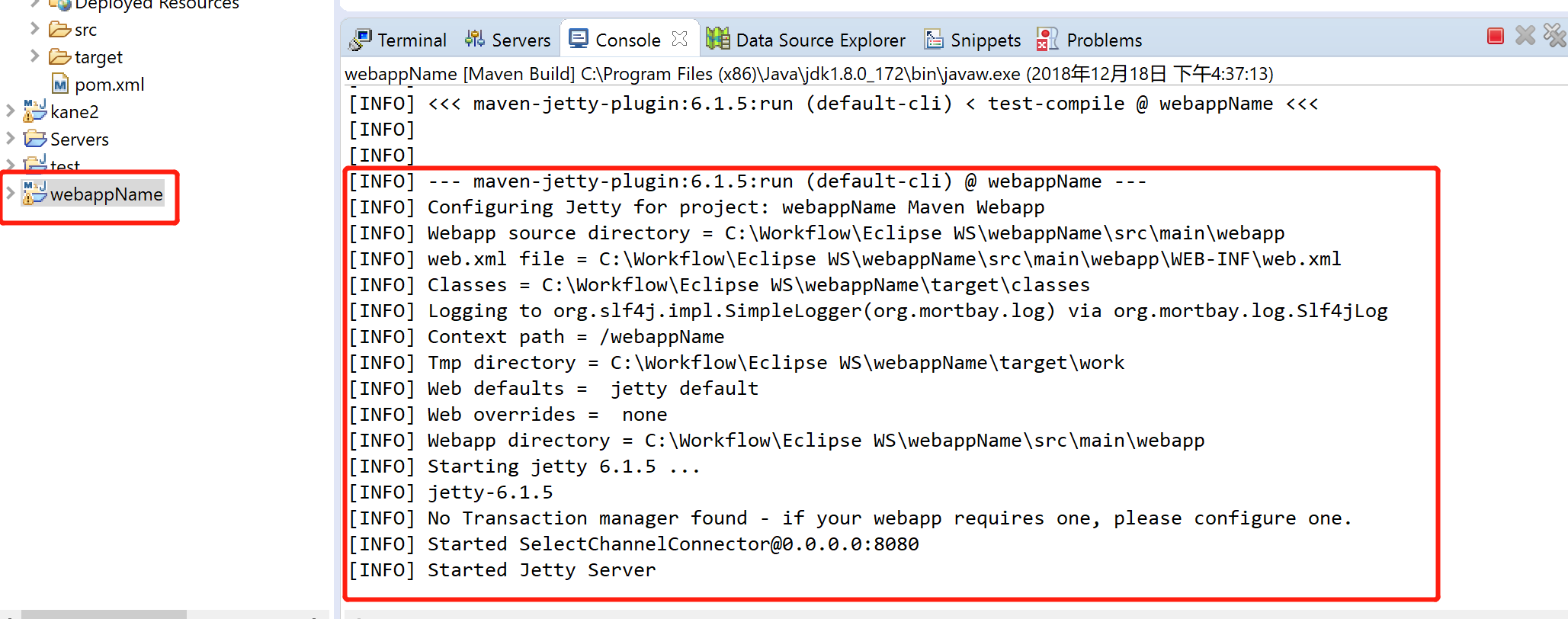 C:\Workflow\Eclipse WS\webappName>mvn tomcat:run