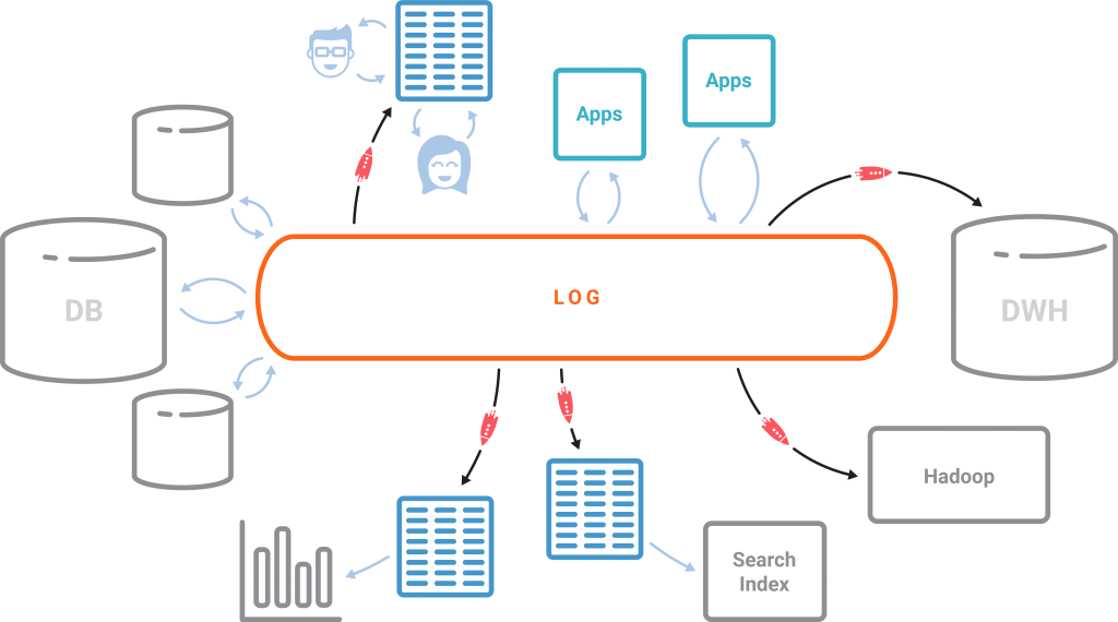 传统关系型数据库以表为核心,日志只不过是实现手段。而在以事件为中心的世界里,情况却恰好相反。日志成为了核心,而表几乎是以日志为基础,新的事件不断被添加到日志里,表的状态也因此发生变化。将 Kafka 作为中心日志,配置 KSQL 这个引擎,我们就可以创建出我们想要的物化视图,而且视图也会持续不断地得到更新。