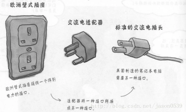 这里的重点在于,老接口有特殊功能,我们不忍舍弃,比如只有欧洲的插头(老接口)能从插座里获得电,没有电我们过不下去。这个功能我们无法舍弃 为了继续享受这个特殊功能,我们使用适配器模式,让我们手中的美国的插头(新接口),拥有老接口的能力。
