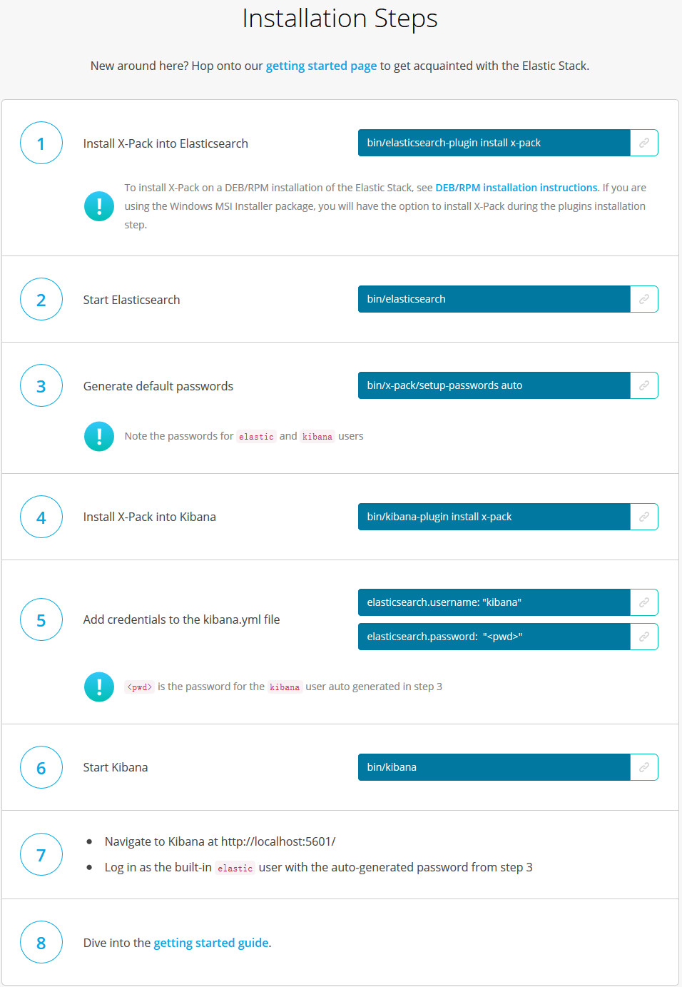 x-pack安装说明地址: https://www.elastic.co/cn/downloads/x-pack