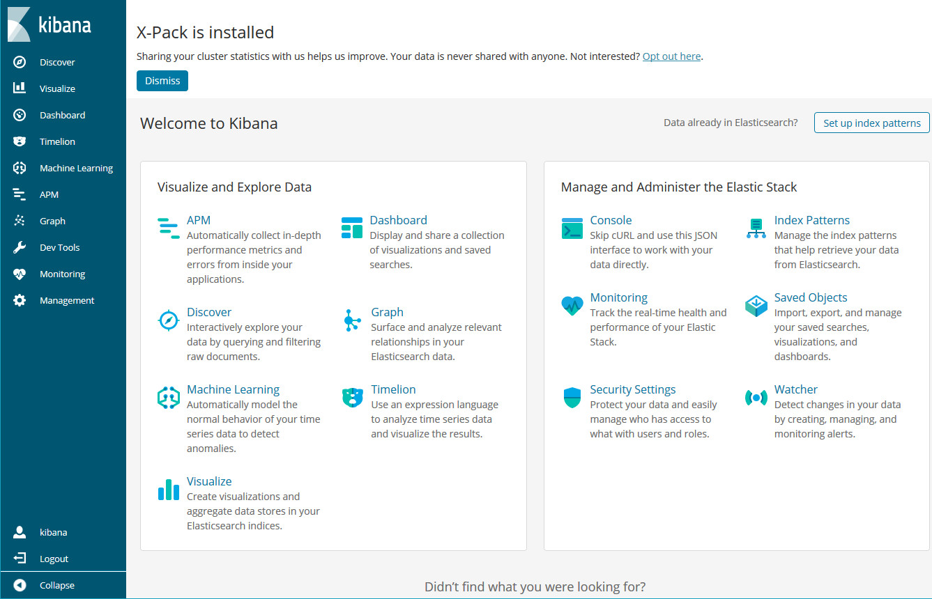 Kibana 让您能够可视化 Elasticsearch 中的数据并操作 Elastic Stack。