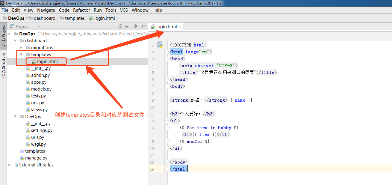 2>.在APP中创建一个templates目录用于存放模板文件