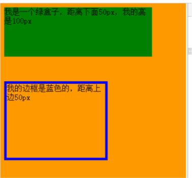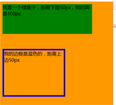 <div class="box1">我是一个绿盒子,距离下面50px,我的高是100px</div>