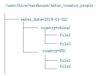 这里的分区字段为:enter_date、country,也就是说,先按照enter_date进行分类,在enter_date的基础上,在按照country再次进行分类