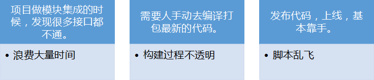 持续集成是一种软件开发实践,即团队开发成员经常集成他们的工作,通常每个成员每天至少集成一次,也就意味着每天可能会发生多次集成。每次集成都通过自动化的构建(包括编译,发布,自动化测试)来验证,从而尽快地发现集成错误。许多团队发现这个过程可以大大减少集成的问题,让团队能够更快的开发内聚的软件。