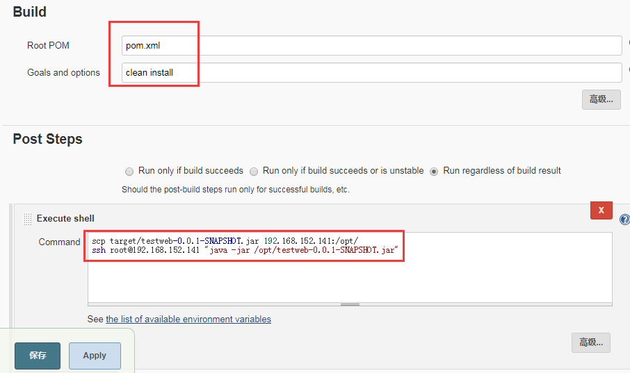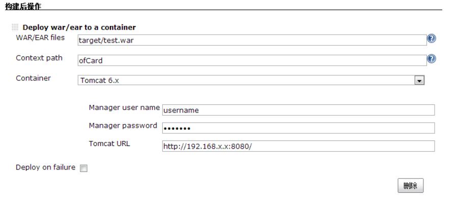 - WAR/EAR files:war文件的存放位置,如:target/test.war 注意:相对路径,target前是没有/的。
